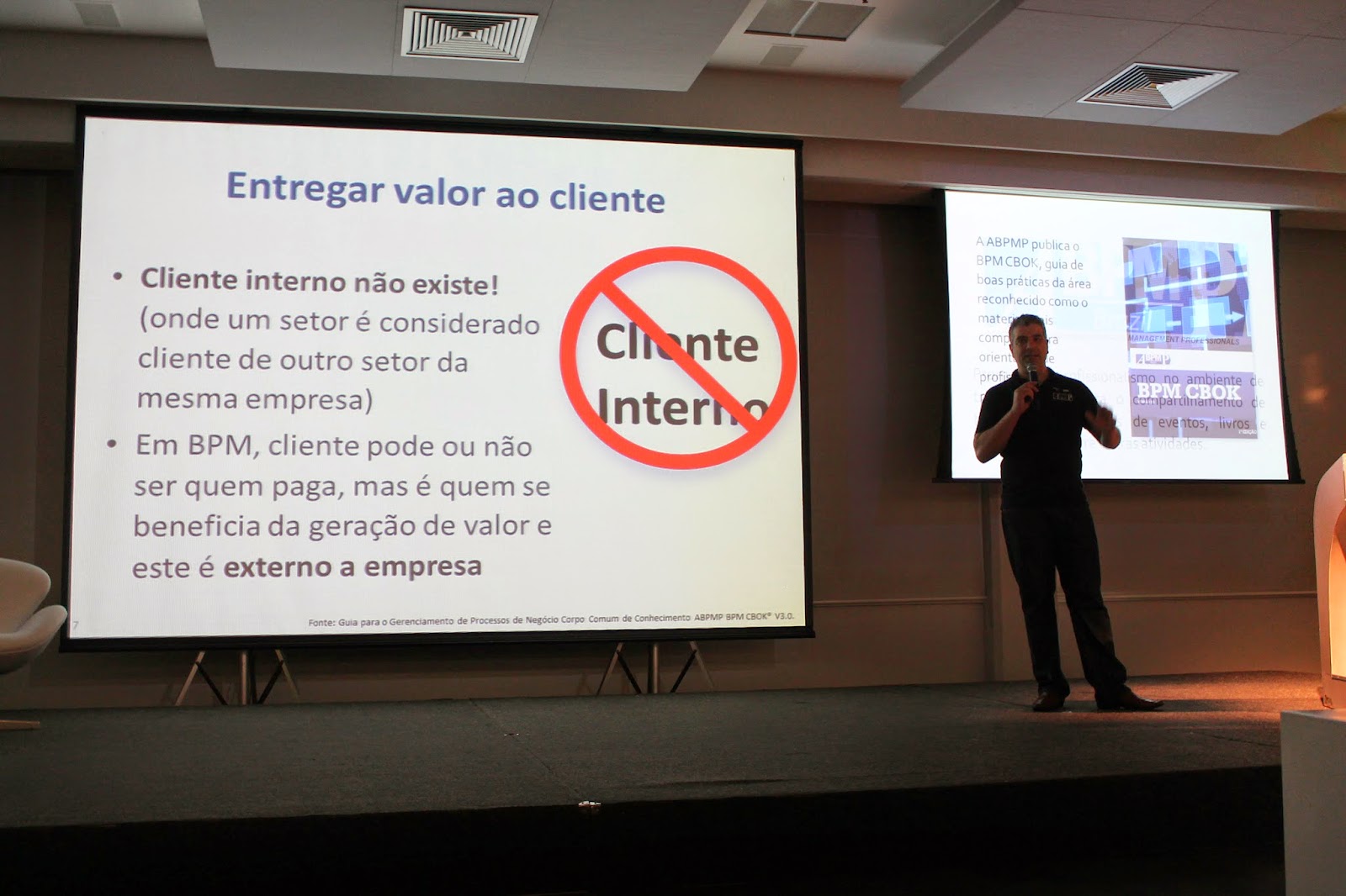 Logo em seguida, iniciou a palestra Como o iBPM e as tecnologias mais modernas disponíveis impulsionam o novo modelo de gestão apresentada por Maurício Bitencourt, CBPP vice-presidente e um dos fundadores do capítulo da ABPMP no Brasil. Esta palestra teve o objetivo de dar contexto da disciplina gerencial BPM, apresentar diferentes técnicas e tecnologias, principalmente, para aqueles que estão tendo um primeiro contato com os assuntos e o formato do evento.